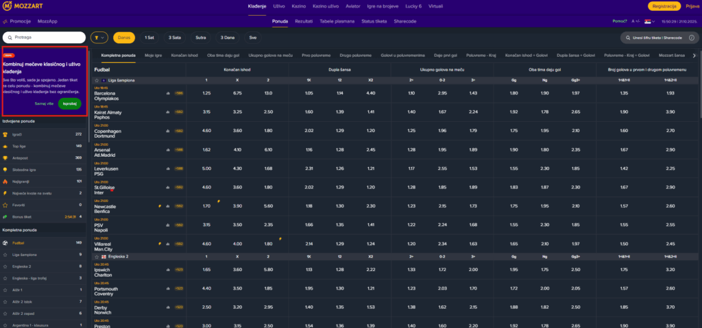 Multiselekt – možeš da igraš više različitih tipova za jedan meč, na istom tiketu!